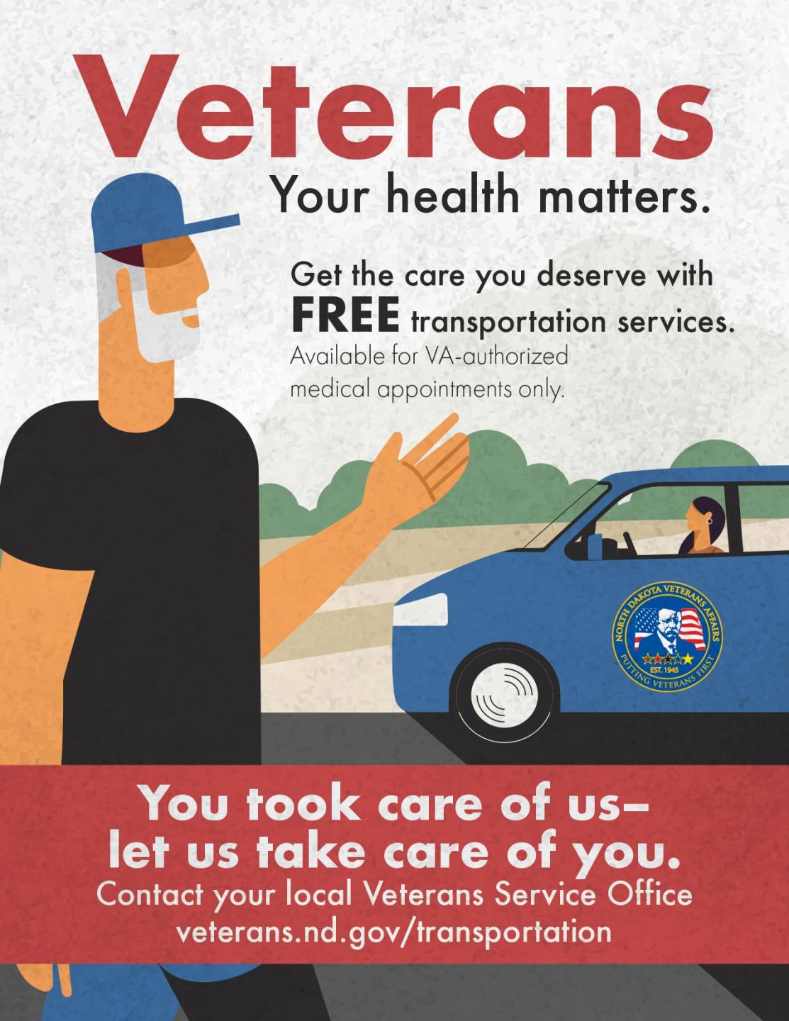 Never miss a VA-authorized medical appointment with free transportation available through the Highly Rural Transportation Grant program. Contact your local Veterans Service Office to learn more.